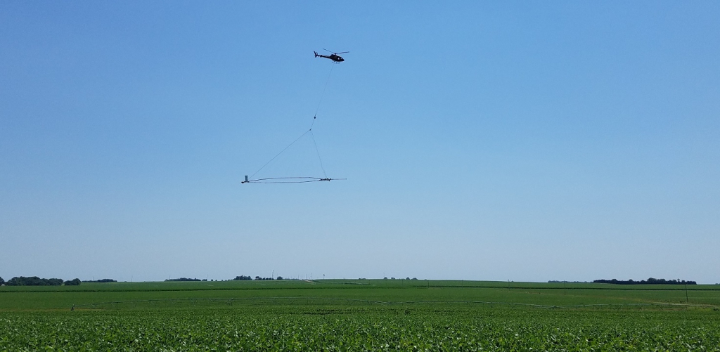This extensive electromagnetics technology, when held aloft by a helicopter, produces signaling that enables mapping of subsurface conditions. Since 2007, Nebraska has effectively used this approach for aquifer mapping through a partnership that includes natural resources districts, the Conservation and Survey Division, and other organizations. Katie Cameron | Natural Resources