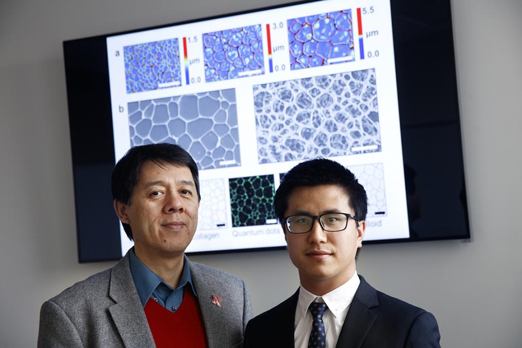 Wang’s anti-icing experimental research group collaborated closely with Xiao Cheng Zeng, Chancellor’s University Professor of Chemistry, and Nebraska materials researchers who investigate the properties of water and ice from a computational perspective. As a result, Wang’s group is now using recrystallized ice as a template for synthesizing two- and three-dimensional materials with different pore sizes.