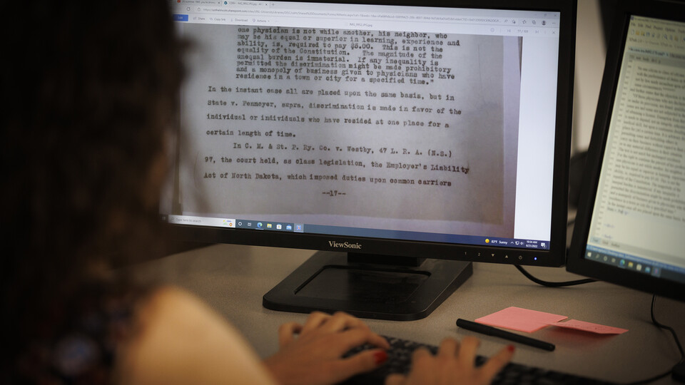 Banse, a senior at St. Olaf College in Northfield, Minnesota, is one of eight student scholars from across the United States doing historical legal research in the University of Nebraska–Lincoln’s Digital Legal Research Lab, a new research experience for undergraduates. The lab is funded by the National Science Foundation for three years and led by principal investigator Katrina Jagodinsky, Susan Rosowski associate professor and graduate chair in history; and co-principal investigator William G. Thomas, Angle Chair in the Humanities, professor of history and associate dean for research and graduate education in the College of Arts and Sciences.