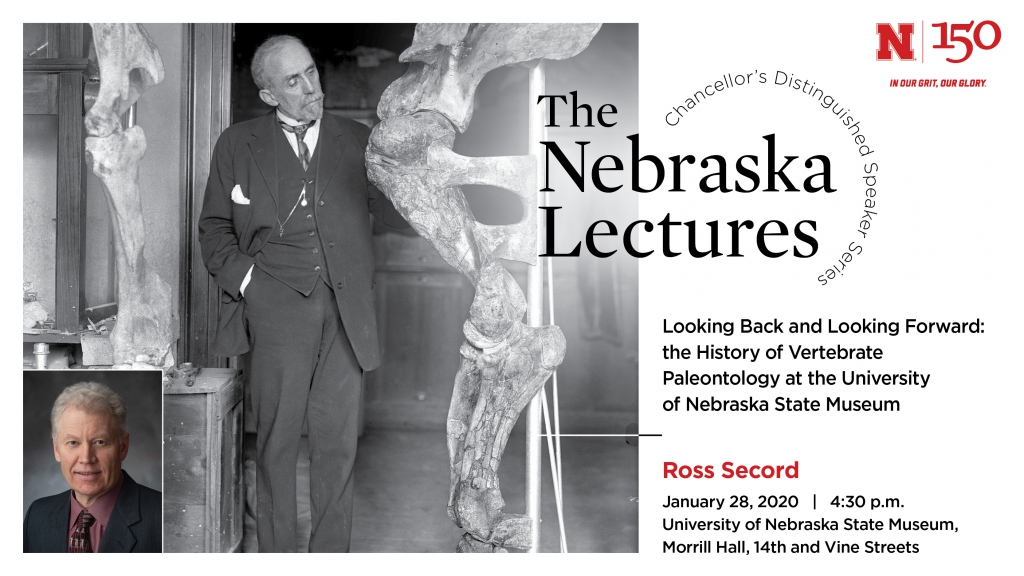 The Nebraska Lecture, “Looking Back and Looking Forward: the History of Vertebrate Paleontology at the University of Nebraska State Museum,” will be webcast Tuesday, Jan. 28 at 4:30 CST. View it here, or via Facebook Live. This is a live webcast, and the feed will be inactive until the presentation begins. If you access the feed early, refresh your browser to view the webcast once it begins. An archived presentation will be available at the Nebraska Lectures website within one week for later viewing.
