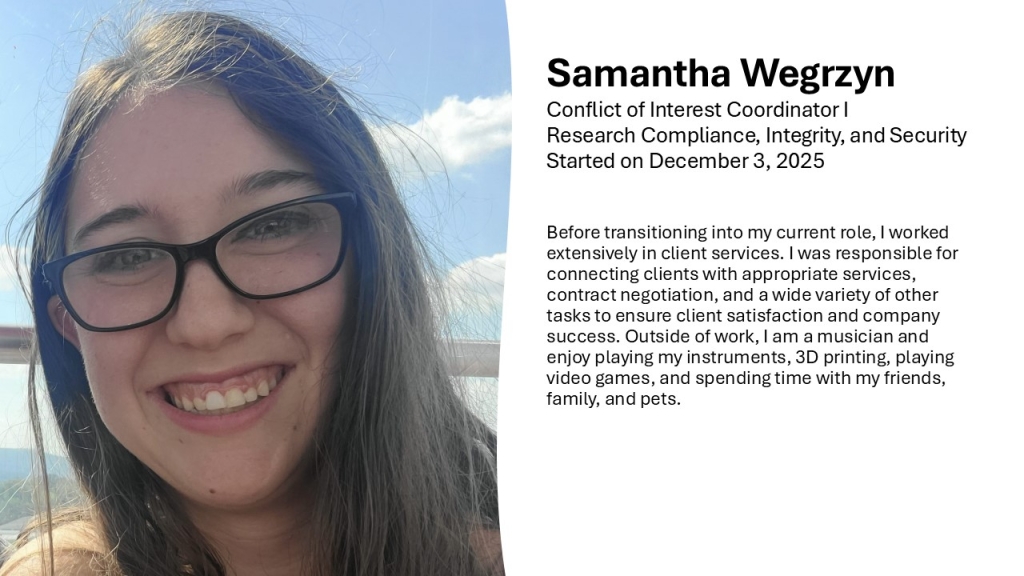 Matthew Walters’s last day with Sponsored Programs was January 5, 2026. In the interim, please contact Craig Goodrich.