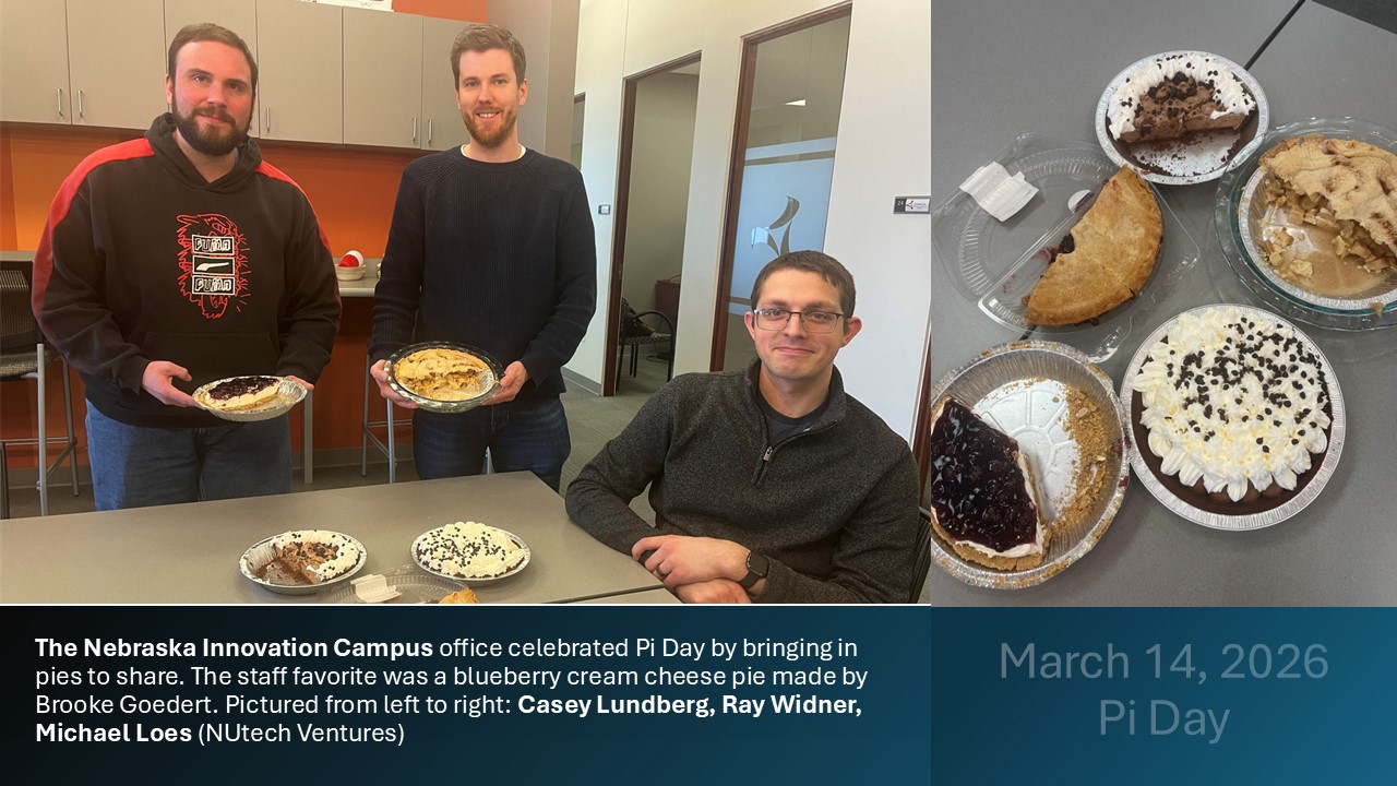 The Nebraska Innovation Campus office celebrated Pi Day by bringing in pies to share.