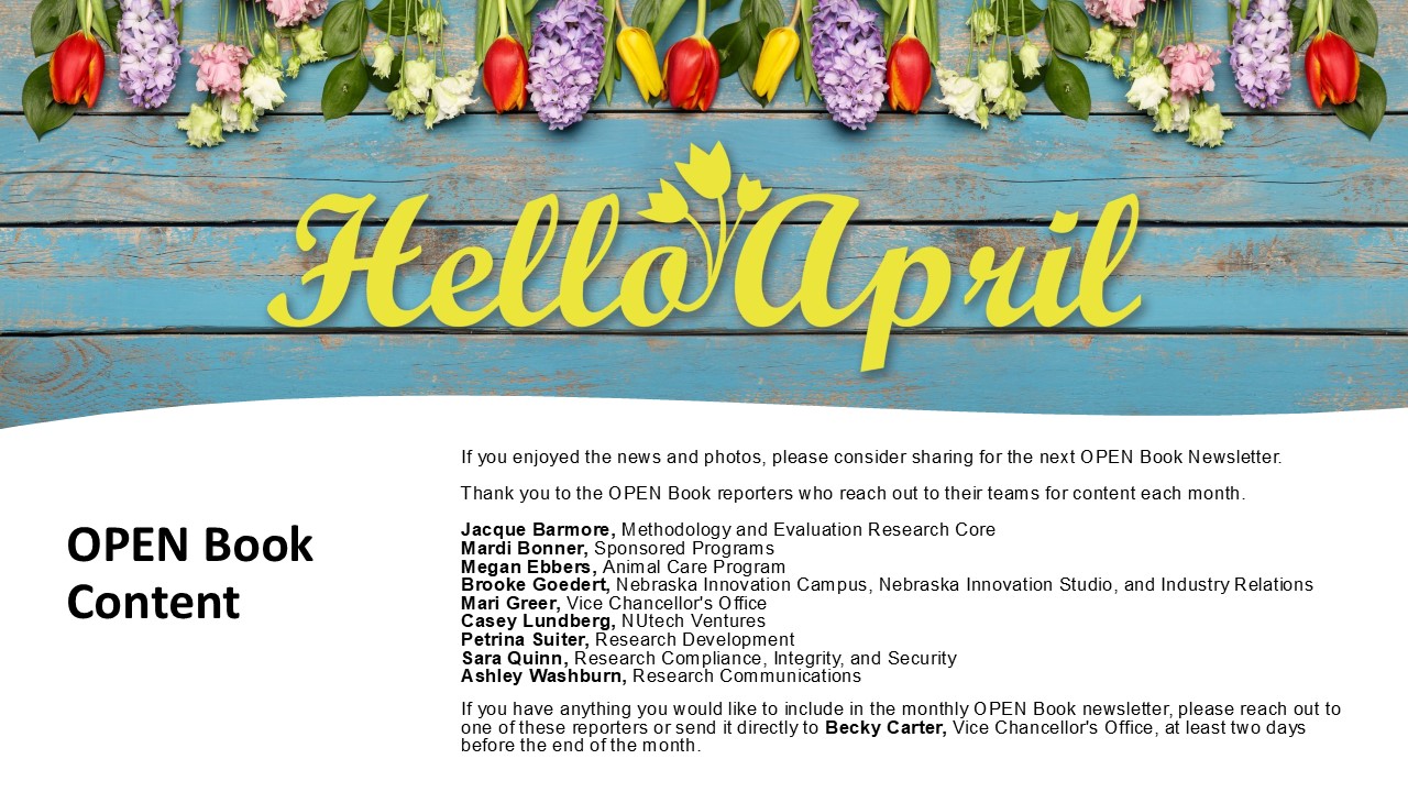 District 7 Staff Senate Open House:   Interim Vice Chancellor Jennifer Nelson will provide a brief research and federal funding update at District 7 Open House Wednesday, April 15. The event will be 10-11am at Nebraska Union’s Chimney Rock Room and on Zoom at go.unl.edu/district7.