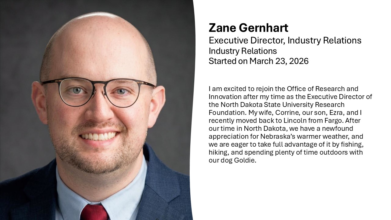 • Grant Wolfe’s last day with Nebraska Innovation Studio was March 5, 2026. In the interim, please contact David Martin.